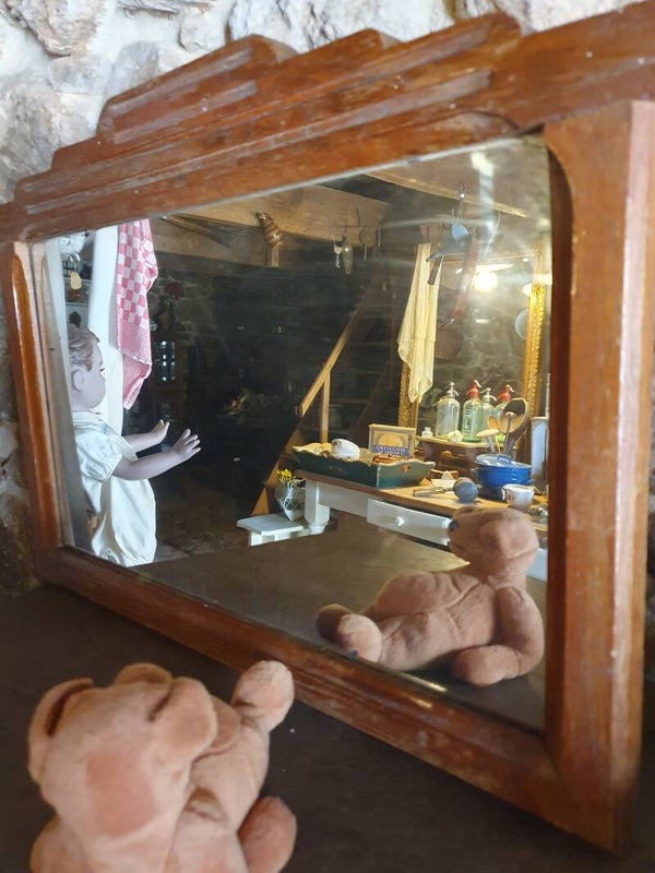Leuke antieke spiegen met houten lijst 62 cm breed en 41 cm hoog.