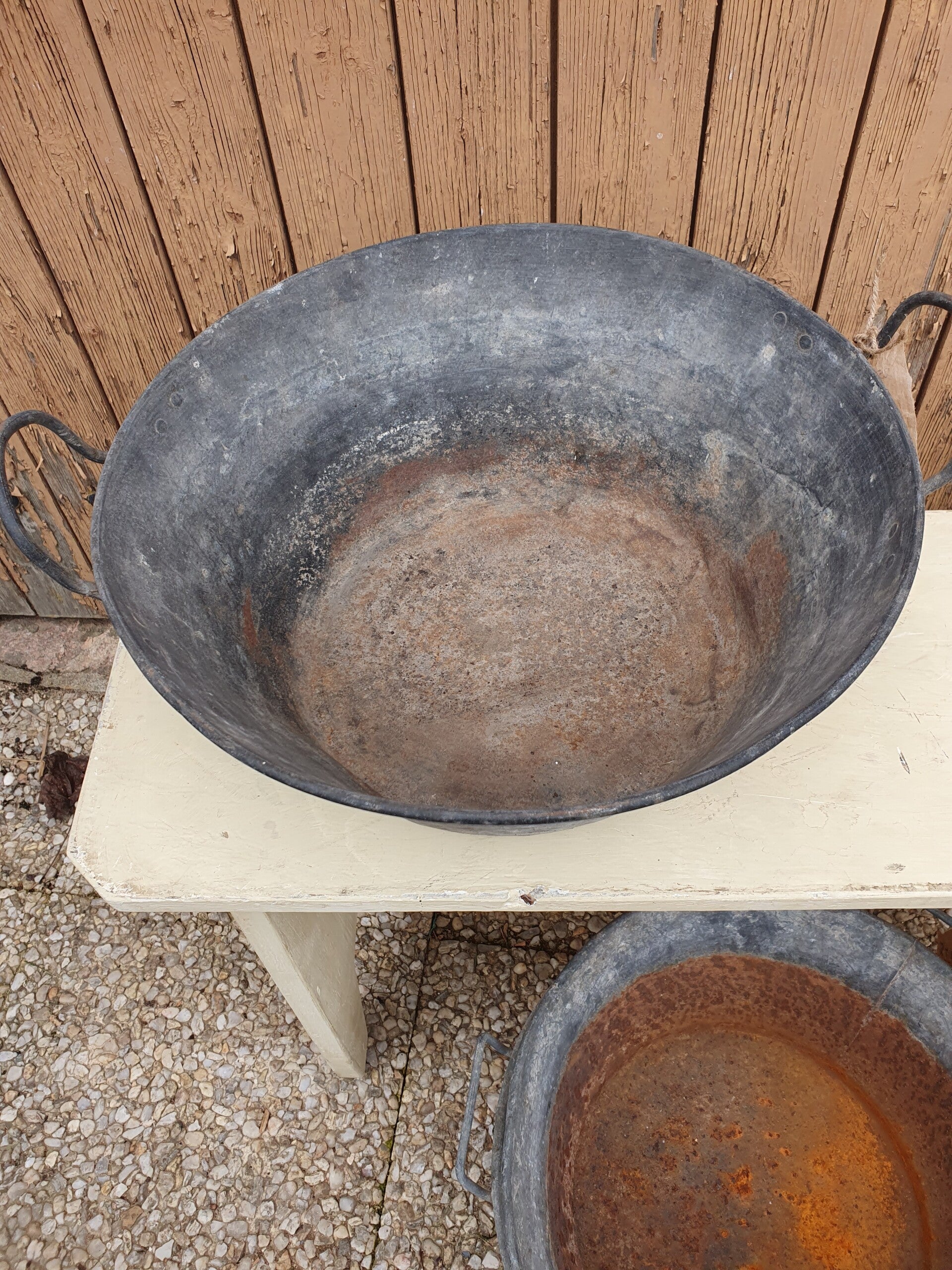 Récipient en zinc vintage avec anses, diamètre 38 cm et 17 cm de haut