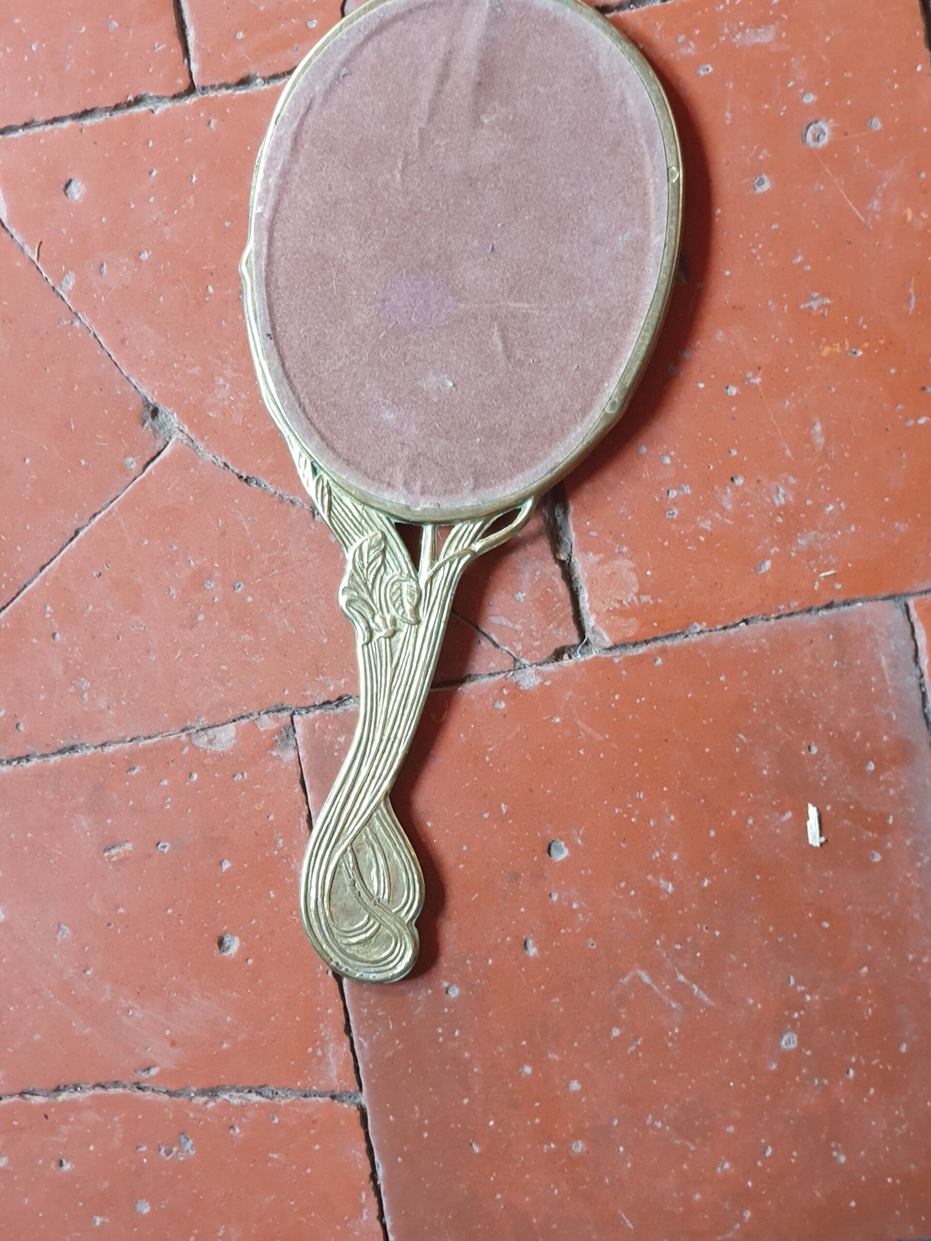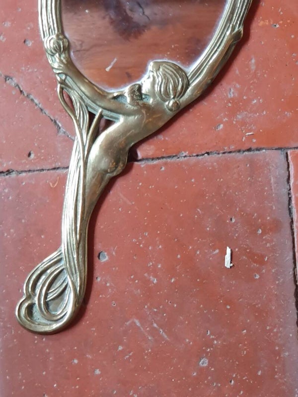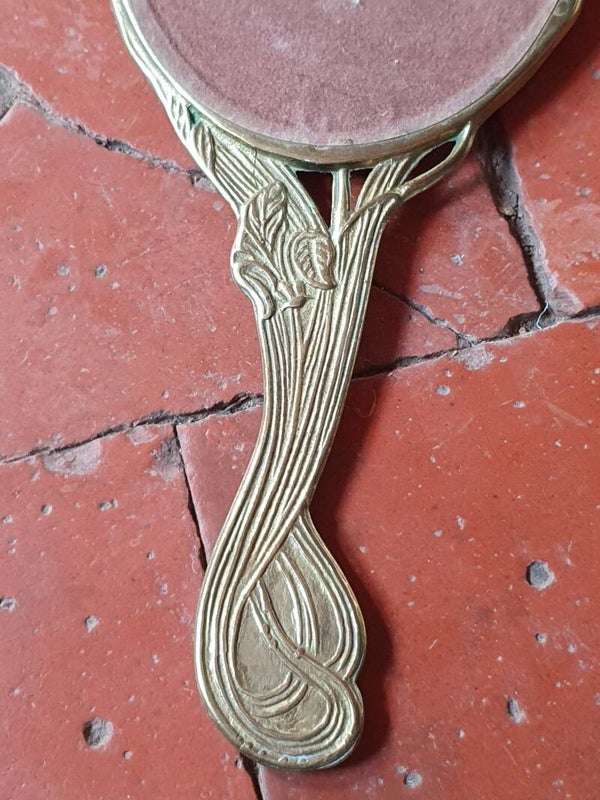 Miroir à main en laiton spécial dans l'élégant style Art Nouveau. Faites attention aux détails de ce bel objet.