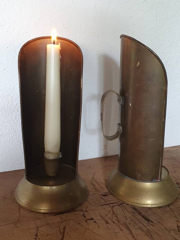 2 Beaux bougeoirs robustes en cuivre jaune. Vous pouvez les poser ou les accrocher au mur avec la boucle de suspension.