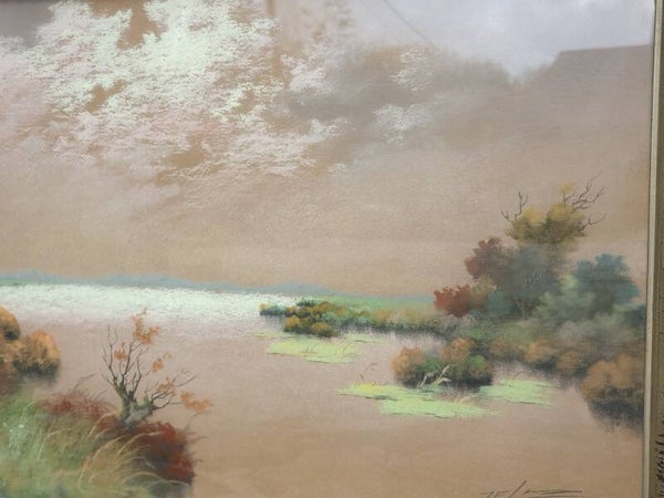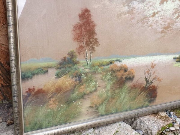 Tableau représentant un paysage de bruyère aux belles couleurs anciennes, signé et encadré