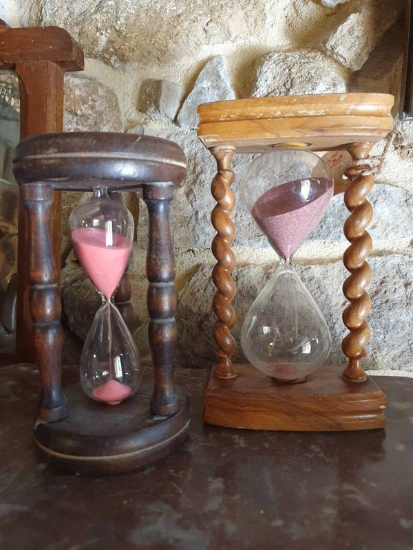 Sablier ancien à pattes torsadées.