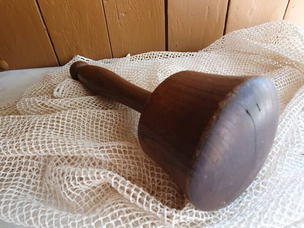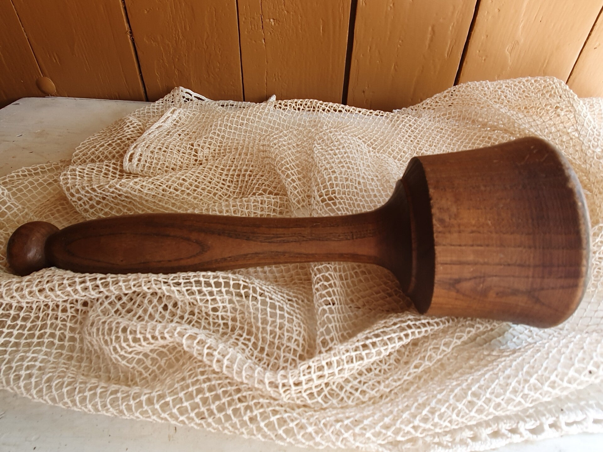 Fraaie vintage houten stamper, gewoon om te gebruiken of leuk in een oude pot als decoratie in de keuken. Maat: 27 cm lang, diameter 9 cm.