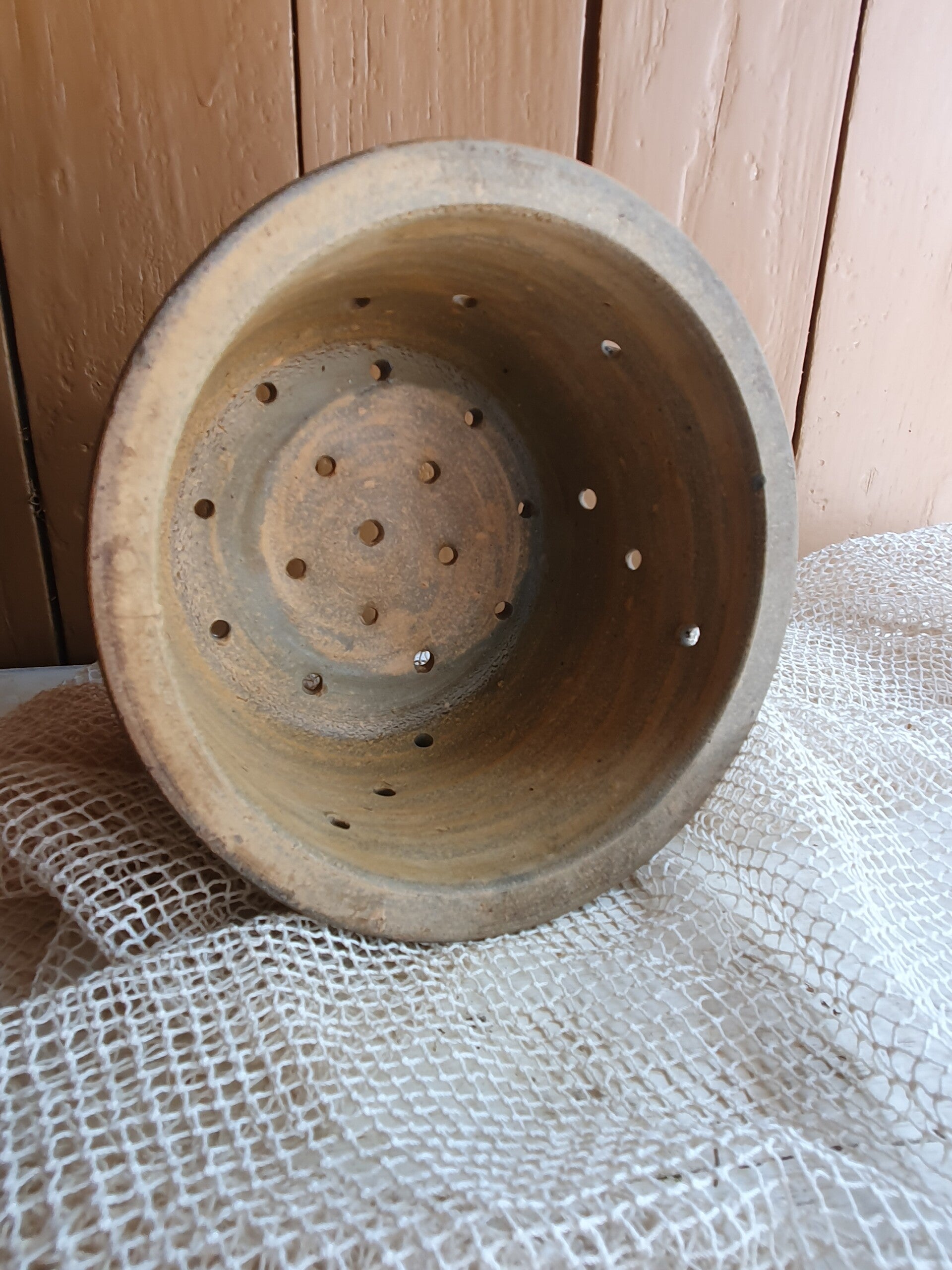 Passoire à fromage brocante gres, agréable et pratique pour vos baies, raisins ou fraises, par exemple. Taille : 15,5 de diamètre et 8 cm de hauteur.