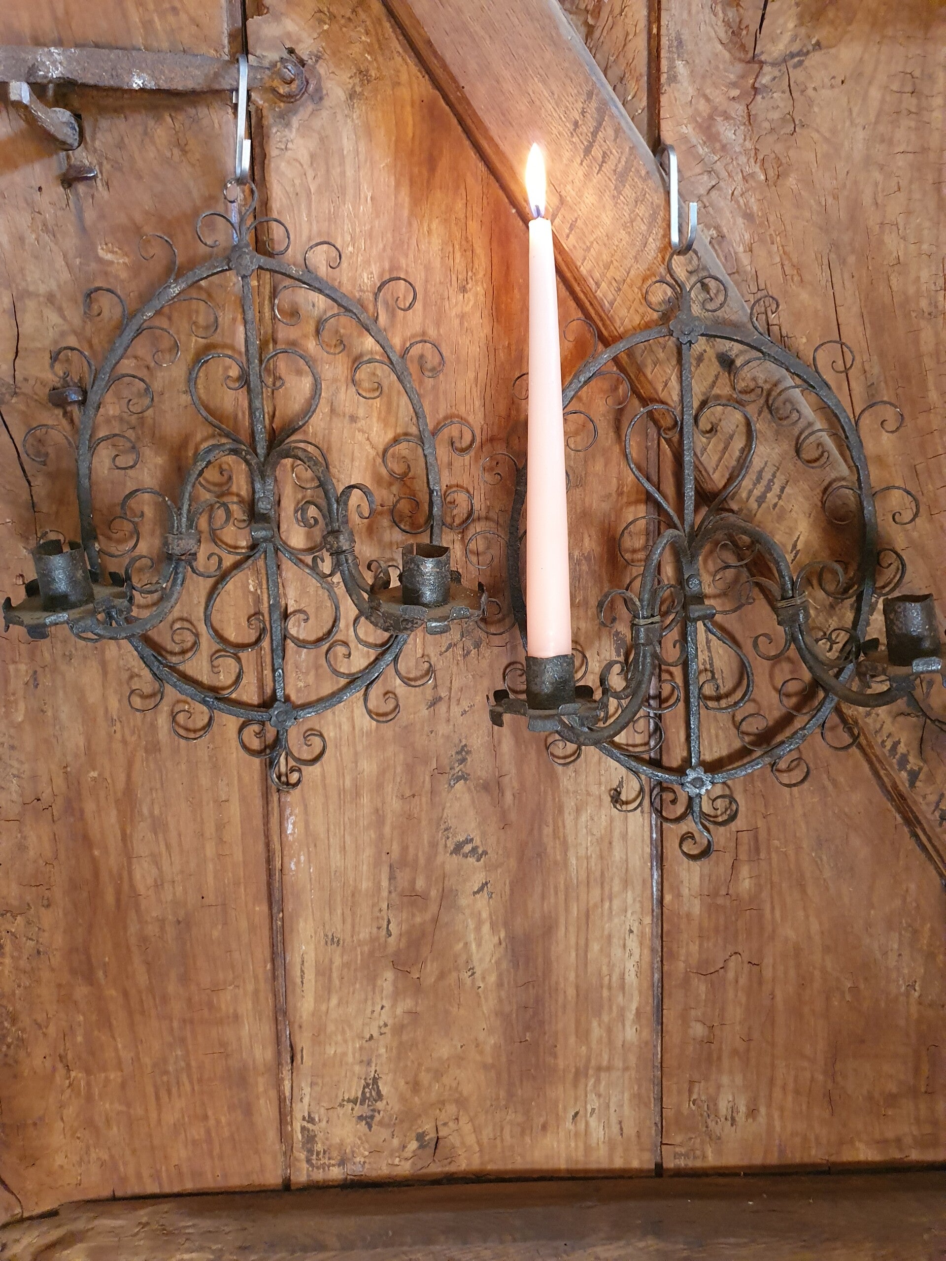 Sierlijke smeedijzeren wandkandelaar - Gracieuse applique murale en fer forgé