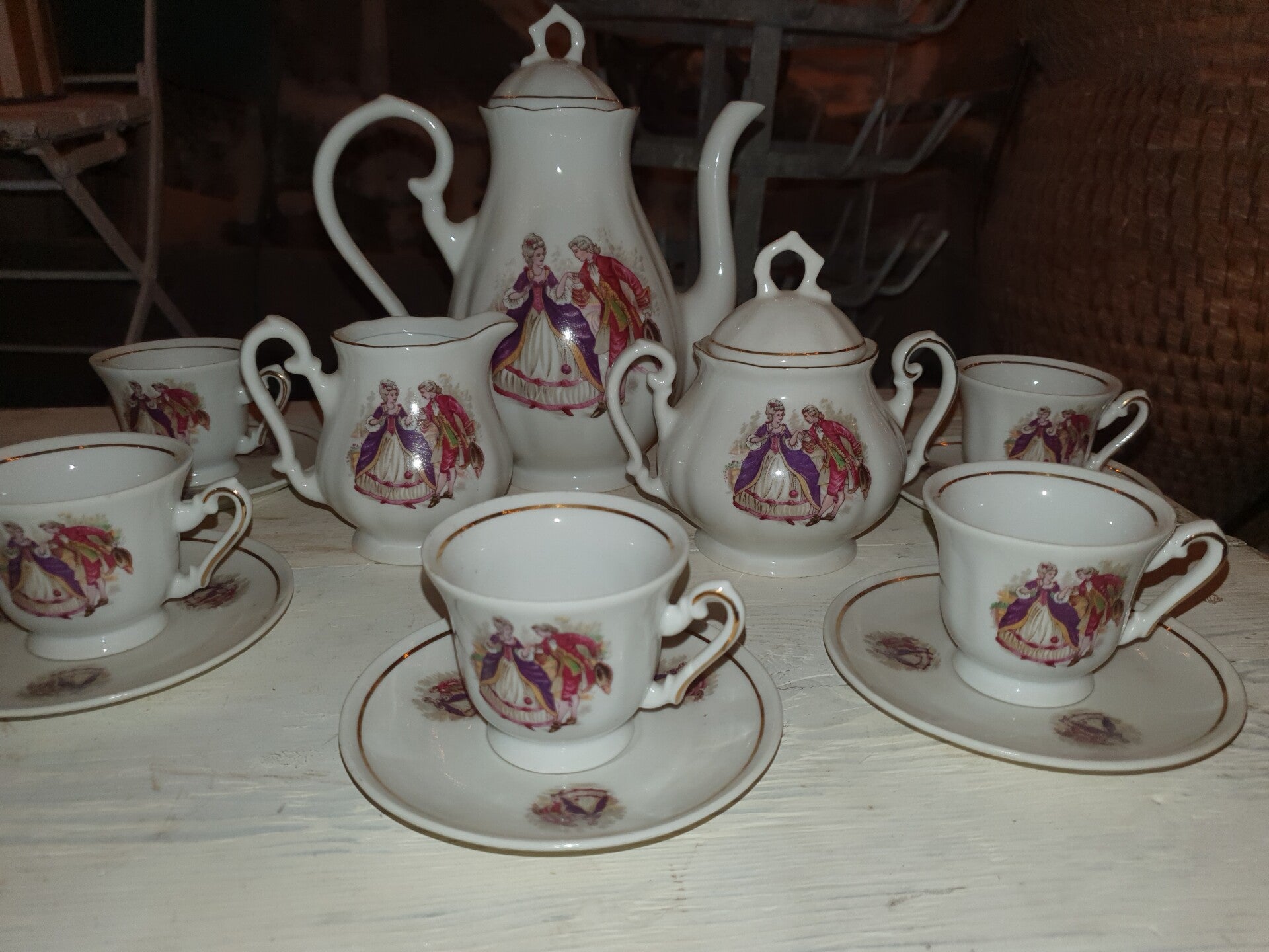 Vintage 15 + 1 -delig koffieservies van het merk Fena porcelain uit Duitsland, in goed staat, bestaande uit: