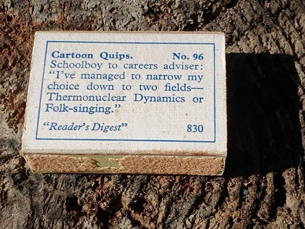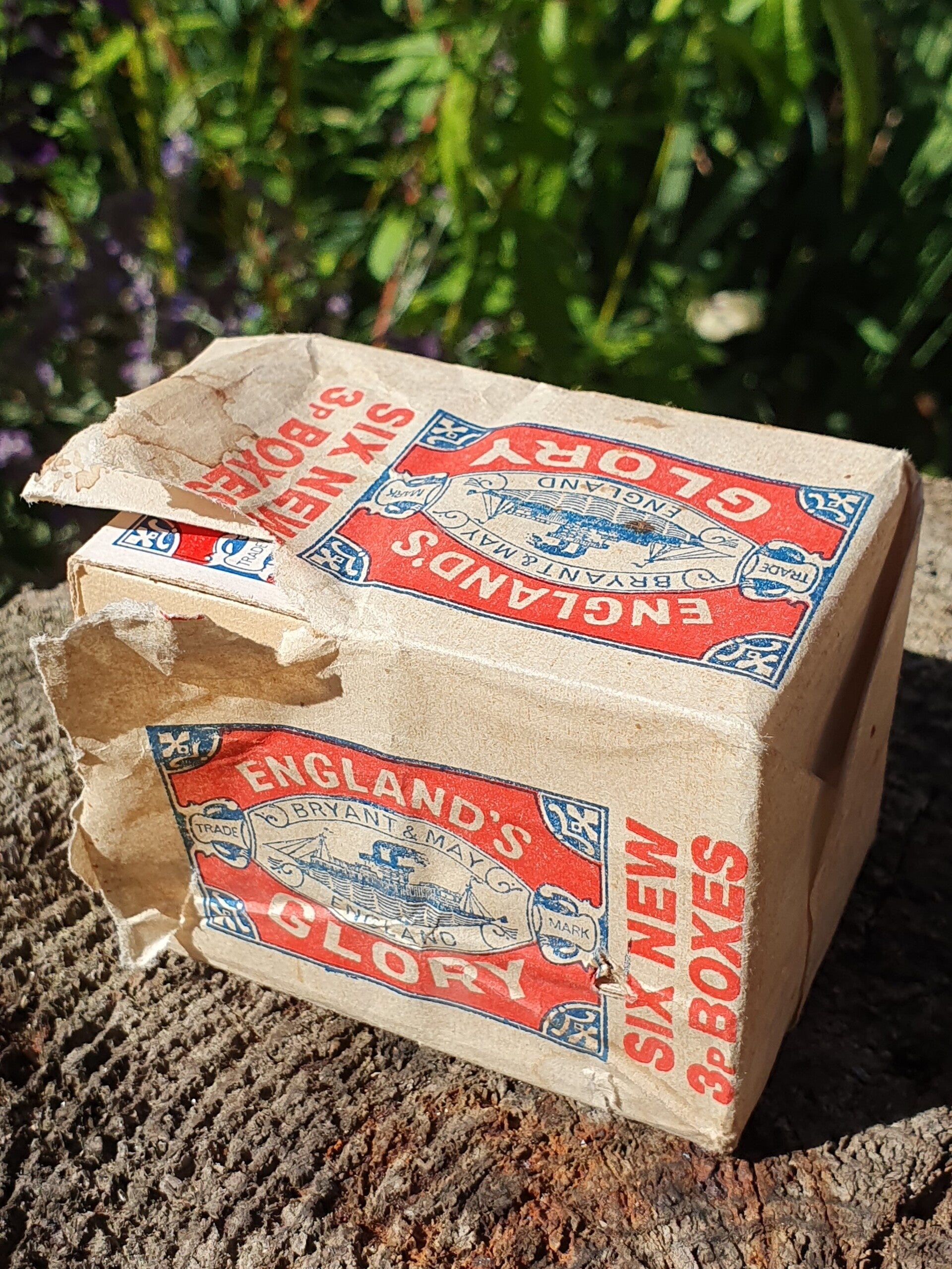 Vintage verpakking met 6 leuke luciferdoosjes van het merk Bryant & May uit Engeland. De fabriek dateert van midden 1900. Op de achtekant van ieder doosje staat een leuke quote.
