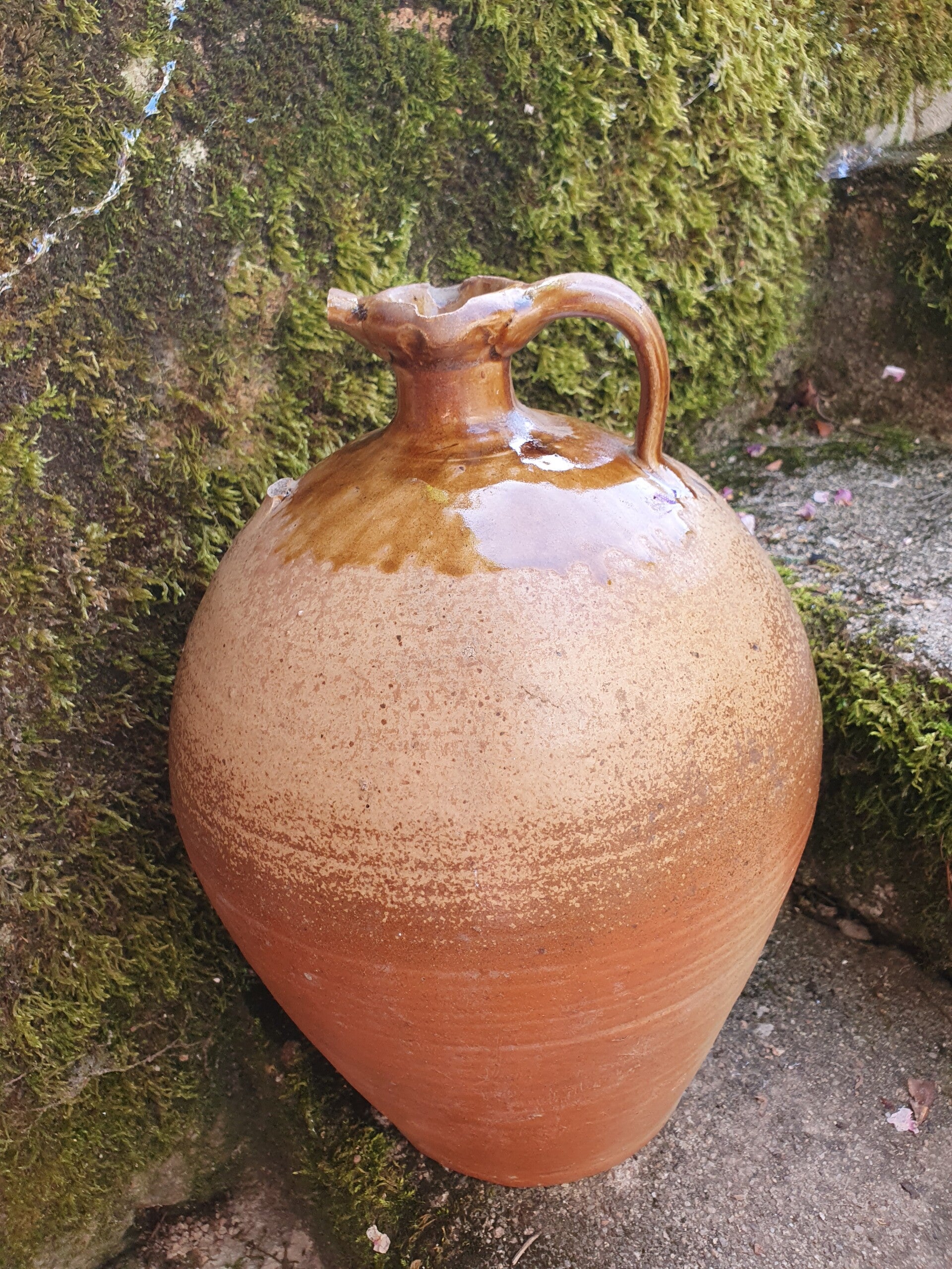 Très ancien pot à huile du début du 19ème siècle. Oui, 1 oreille est cassée, mais ce n'est pas dérangeant. Sinon complètement cool ! La cruche mesure 36 cm de haut et a un diamètre de 24 cm.