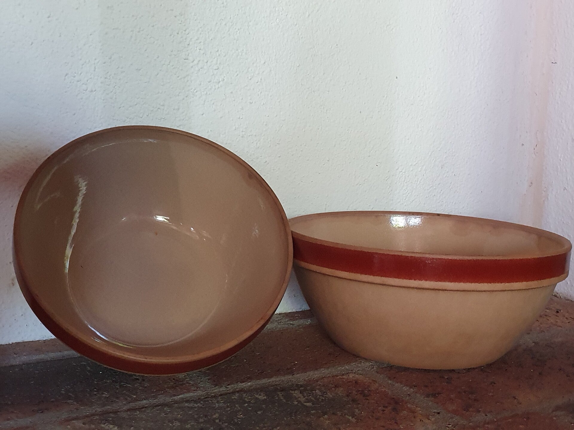 Bols originaux en grès français de Bourgogne. Vitré à l'intérieur. Aussi bon avec des noix, des légumes ou des fruits. Marqué: Gres de Gien France 3068 A fait 8,5 cm de haut pour un diamètre de 20 cm = 10 euros 3068B fait 9,5 cm de haut pour un diamètre de 22,5 cm = 12,50 euros