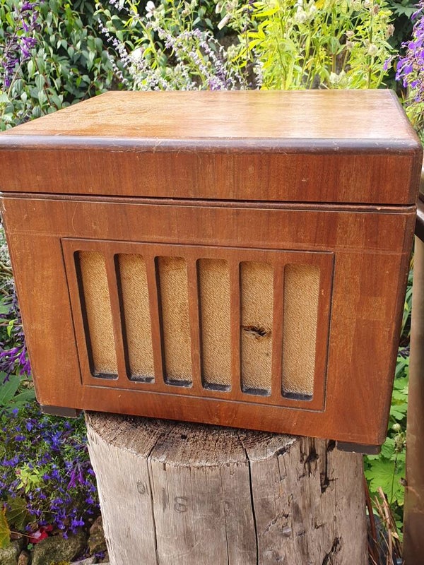 Électrophone ancien de la marque Ducretet Thomson-Houston, modèle E 40 "Lulli", de 1937. Le boîtier est en bois de noyer. Plus d’informations sur : www.doctsf.com