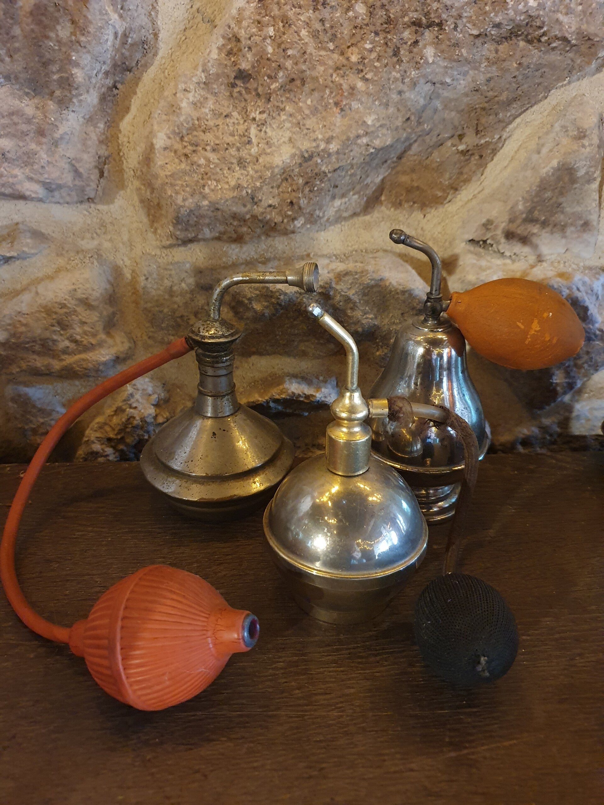 Kappers benodigdheden: een brocante verstuiver met knijpbal.