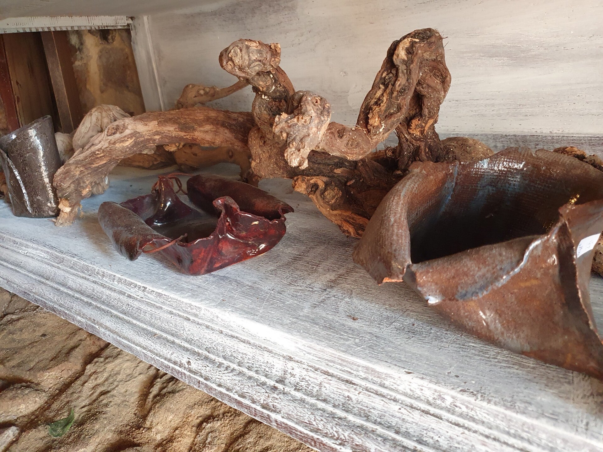 Objets d'art série de 3, faïence artisanale, vernissée. Regarde aussi Sac objet d'art et bol objet d'art de la même série