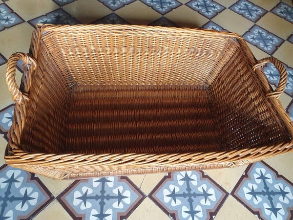 Super mooie wasmand van 74 cm breed x 52 cm diep x 27 cm hoog. Daar kan wat in!