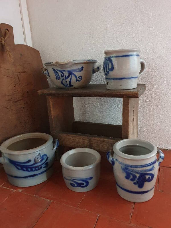 Grote keulse pot met oren, diameter 19,5 cm, hoogte 14,5 cm.
