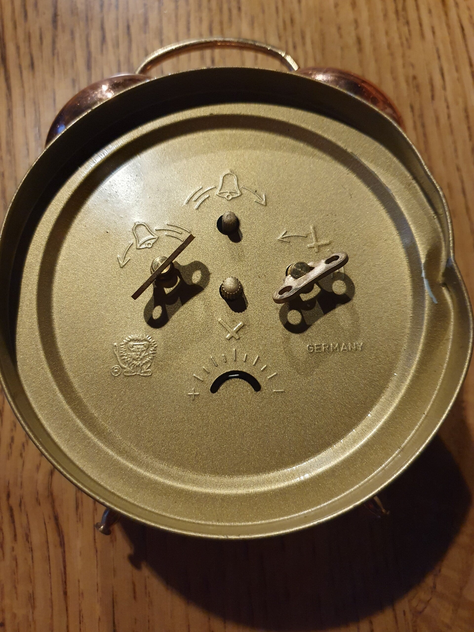 Vintage koperen wekker van het merk Vedette. Deze wekker heeft arabische cijfers. Mooie decoratie, wekker loopt.