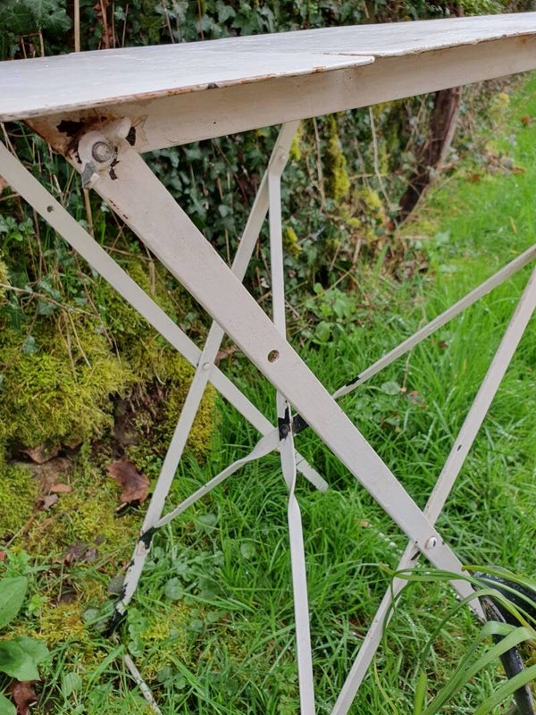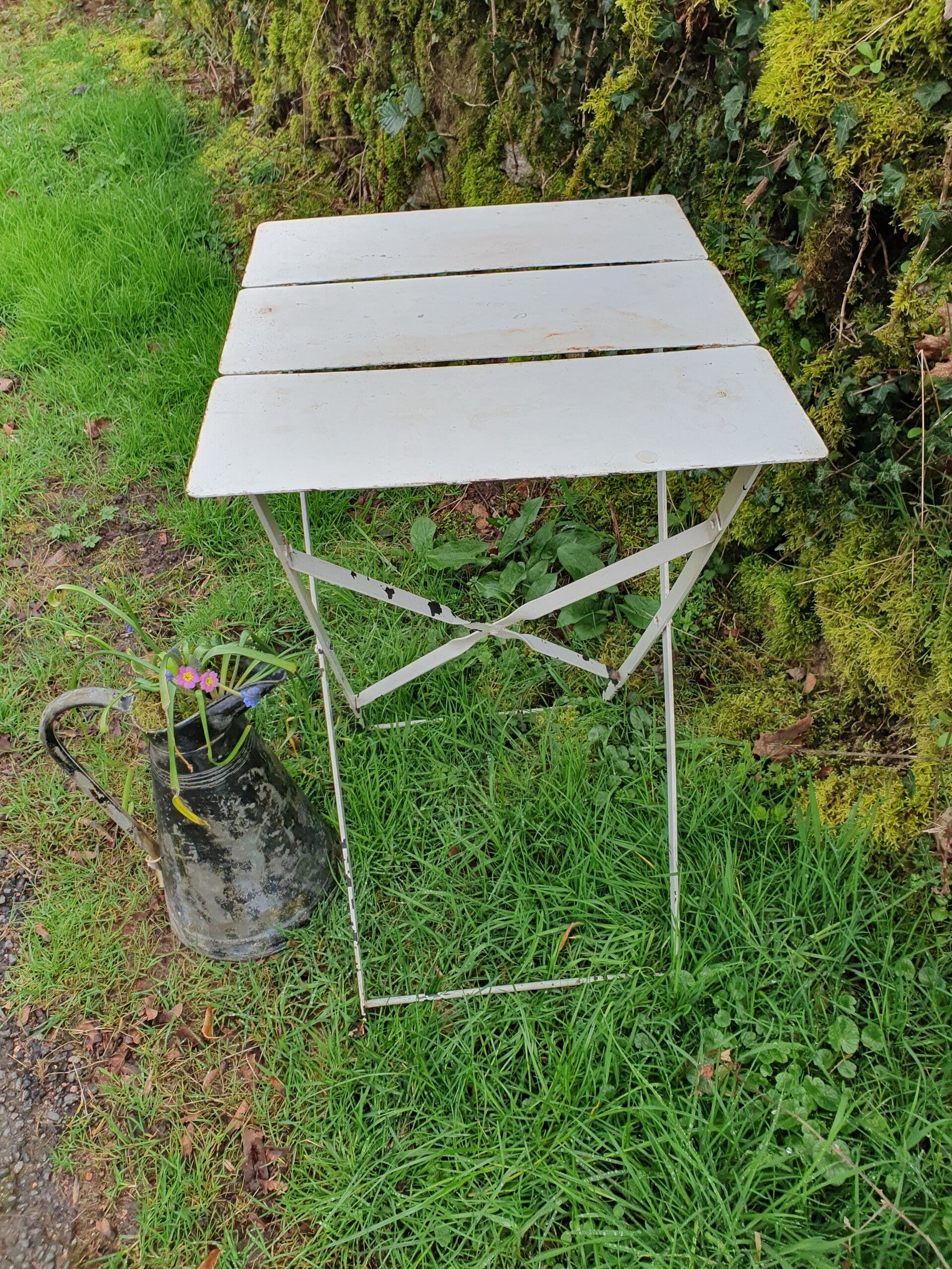 Table en métal blanc également pliable. La table est utile dans le jardin, sur la terrasse ou la véranda ou tout simplement à l'intérieur. Les dimensions sont de 40 x 45 x 70 cm de hauteur.