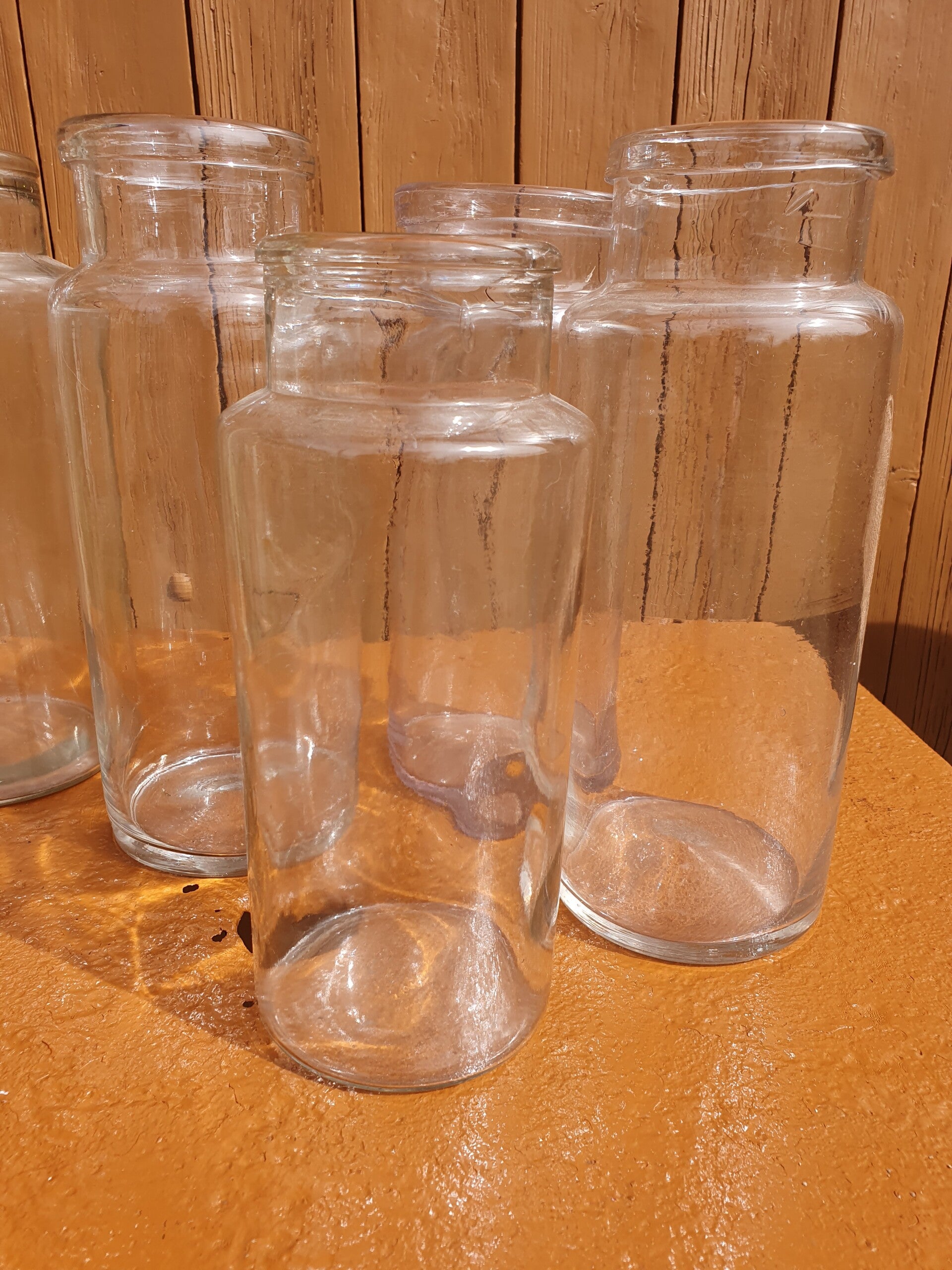 Mooie oude franse voorraadpot van helder glas met een verdikte rand, met een inhoud van 2 liter. Werd vroeger gebruikt voor augurken of kersen te conserveren. Nu perfect voor bijvoorbeeld de pasta of andere voorraad, met schelpen of mooie stenen, maar ook leuk met een bos bloemen. Leuk om er een paar bij elkaar te zetten. De pot is 26 cm hoog en heeft een opening van 9 cm.