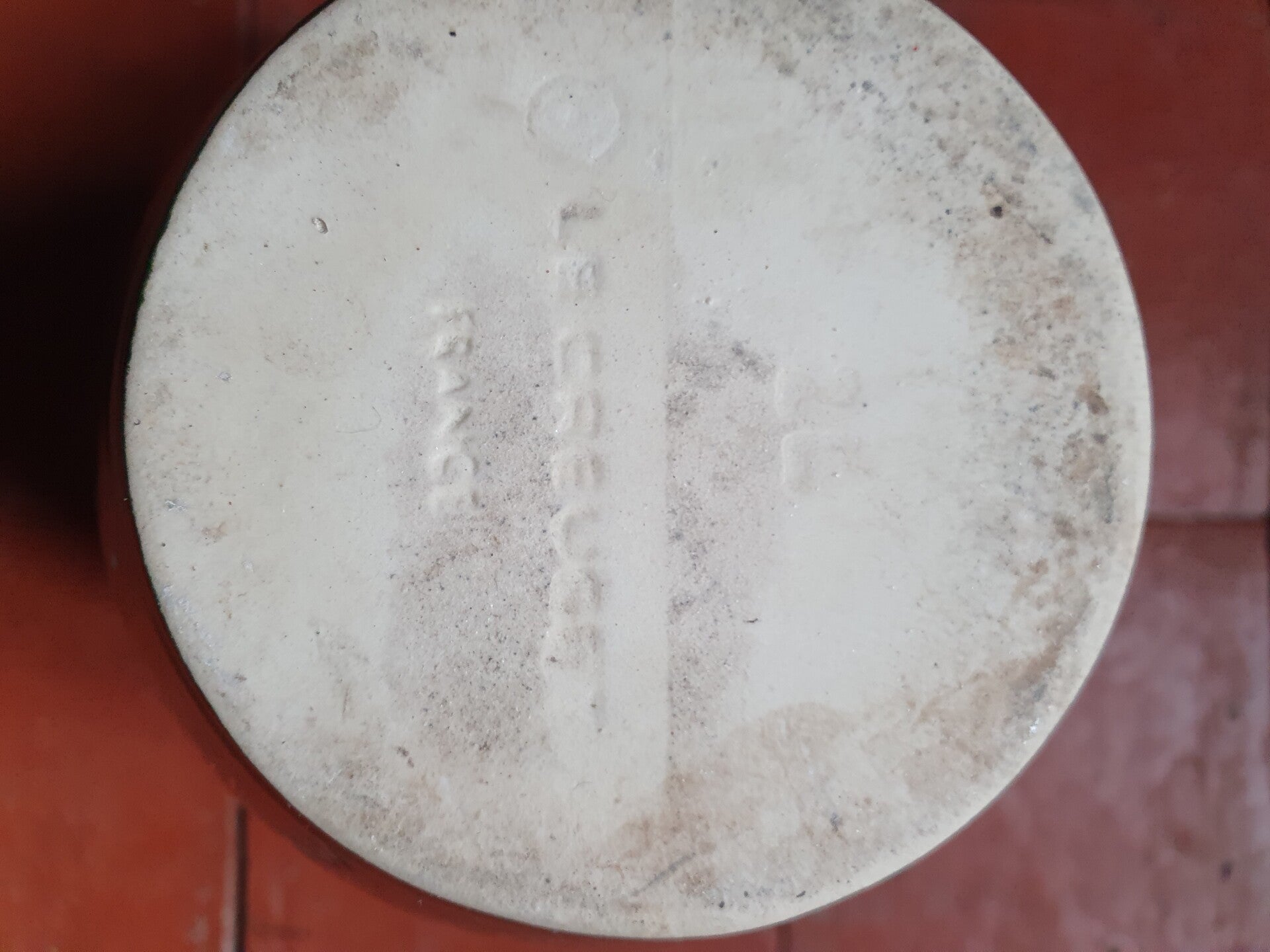 Gote gelazuurde bruine gres kan van 5 liter. Prachtig met een grote bos (zonne)bloemen. De kan is gemerkt "Gress Bonny fait à main" handgemaakt. De kan is 29 cm hoog en heeft een opening van 10 cm.
