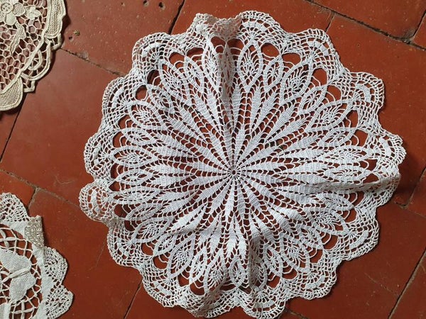 3402 B est un napperon en dentelle aux fuseaux à fleurs, diamètre 30 cm