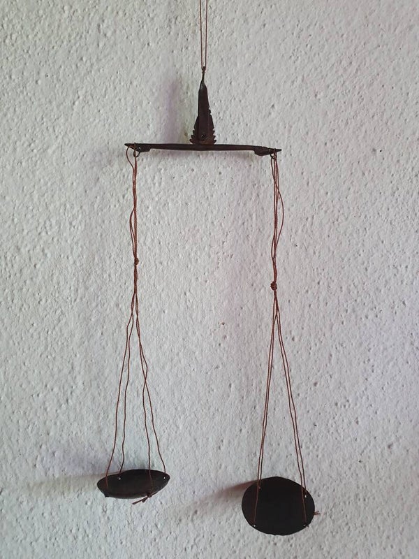 Balance à opium antique dans une belle boîte en bois avec des sculptures des deux côtés. Vous y reconnaissez des bulbes de pavot. La boîte mesure 15 cm de long, 8,5 cm de large et 3 cm de haut avec un couvercle rabattable.