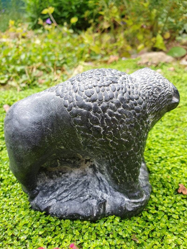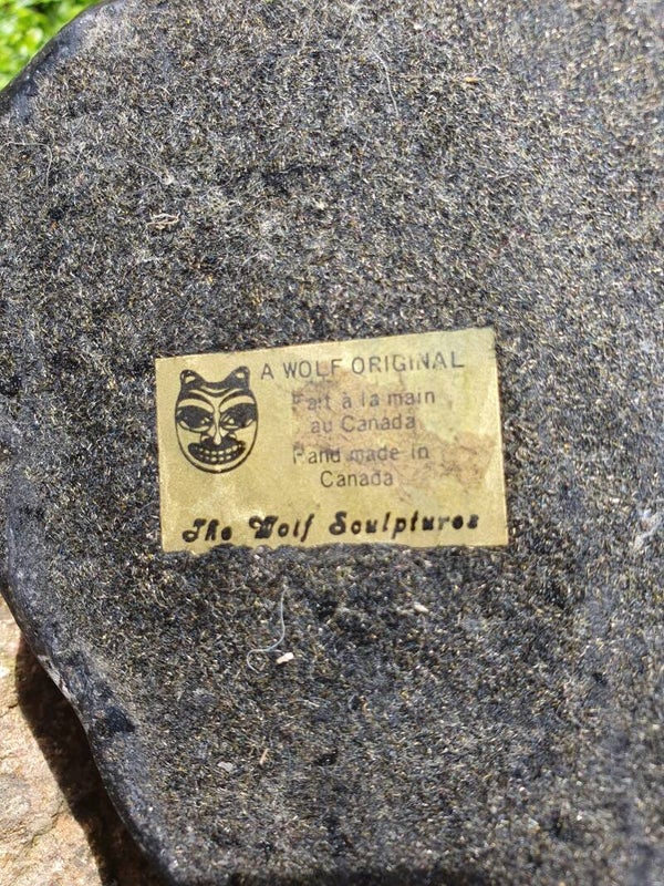 Handgesneden soapstone beeld van bizons, afkomstig uit Canada, gemaakt door de bekende soapstone bewerker "Wolf".