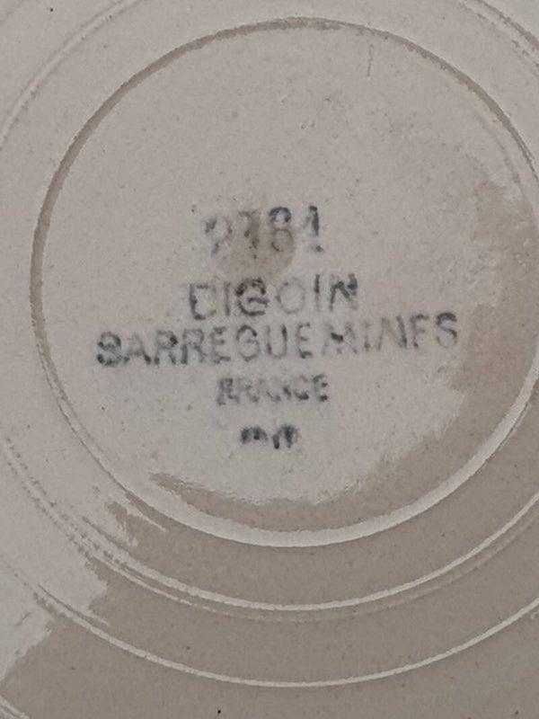 Antiek bord van Digion & Sarrequemines met een roestbruine rand en roos uit het begin van de 20e eeuw genummerd 8781. Het bord meet 23 cm doorsnede.