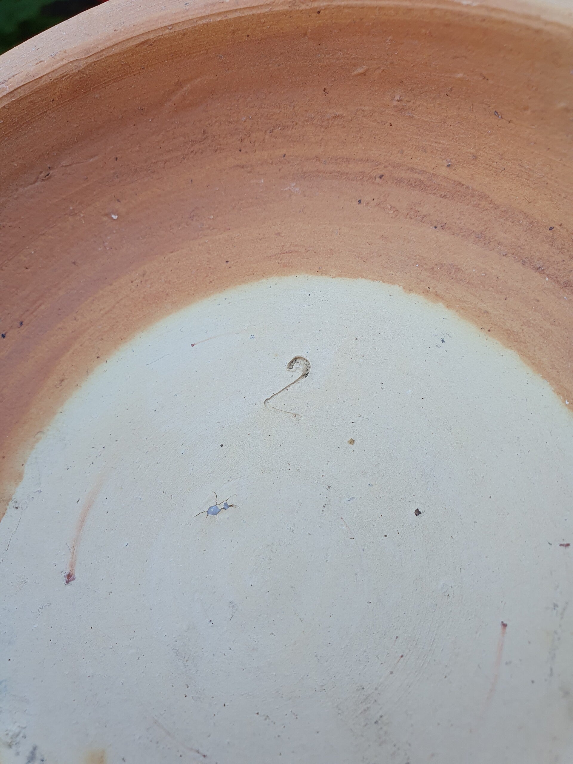 Vintage bruine geglazuurde Franse terrine met deksel en handgrepen van 16,5 cm diameter en 11 cm hoog, gemerkt nummer 2.