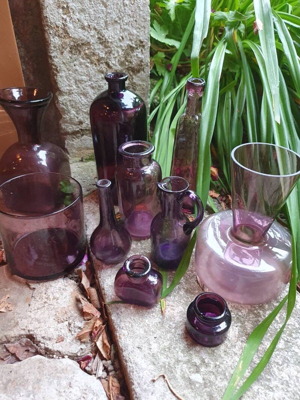 Combineer het met een paar mooie aubergine kleurige flessen.