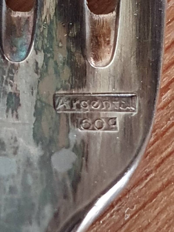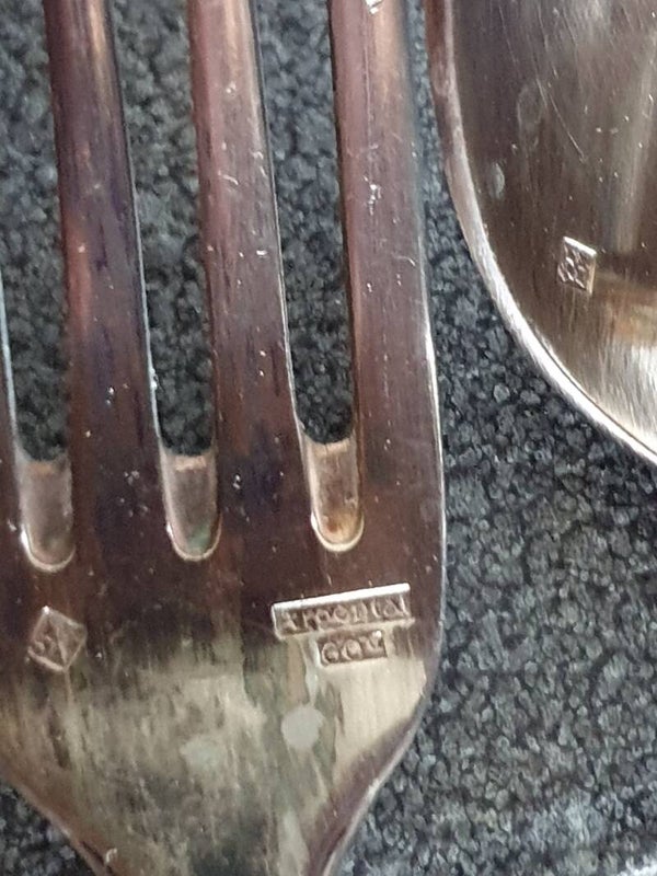 Zilveren vork en lepel met zilvermerk in originele doos.
