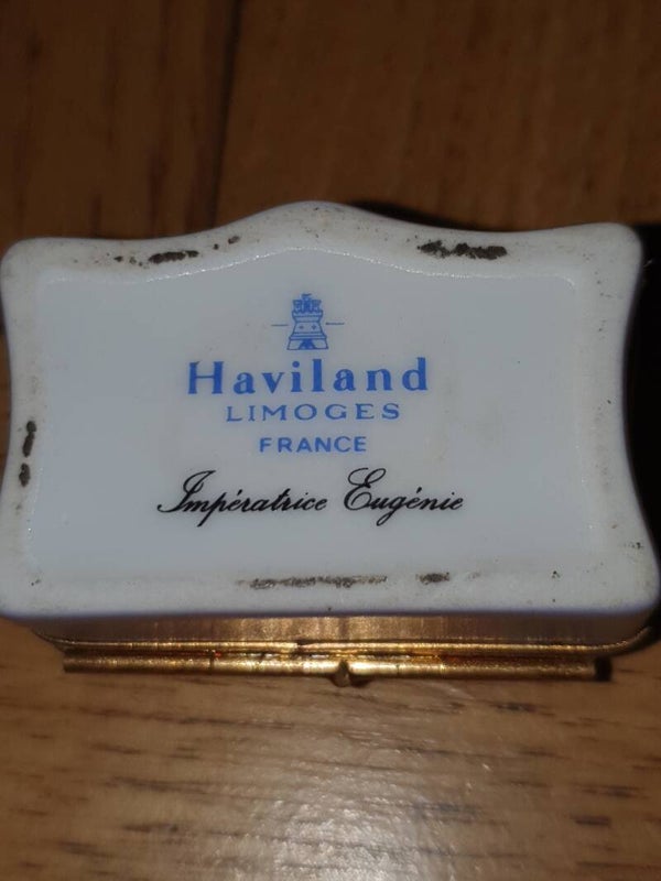 Prachtig antiek bijoutiedoosje / pillendoosje / snuisterijendoosje van Limoges porselein en het merk Haviland, Impératrice Eugènie (keizerin Eug1enie)