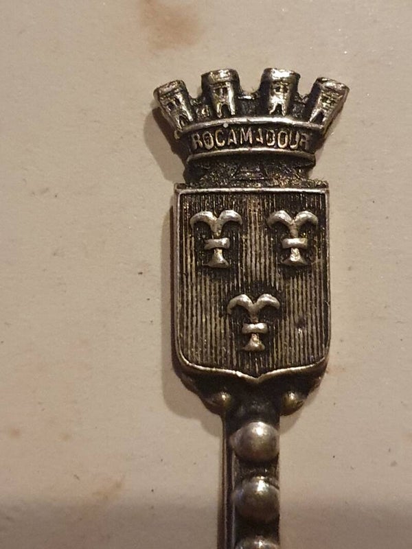 Theelepeltje met het wapen van Racamadour een stad in het departement Lot.