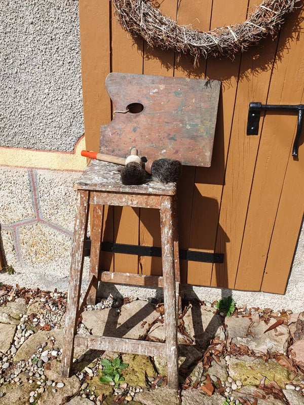 Leuke lange decoratieve grote kwast of stoffer van zwijnen haar. De kwast is 37 cm lang.