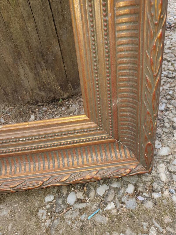 Oude houten lijst in oudgoud met fraai bewerkte rand van 51,5 x 3,5 cm buitenmaat bij 40 x 20 cm binnenmaat.