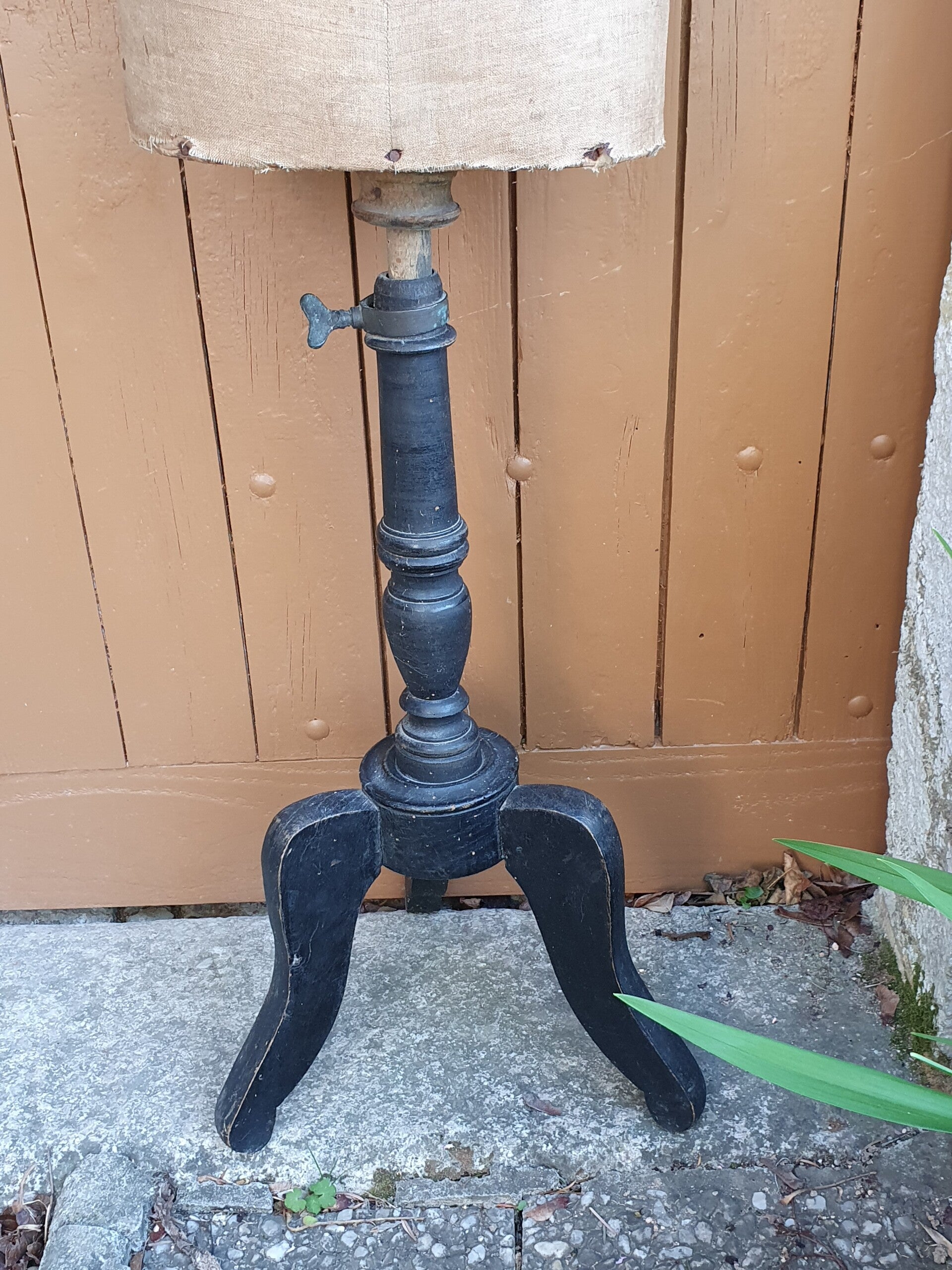 Mooie antieke paspop op houten voet en met houten knop. In hoogte verstelbaar, minimalen hoogte 1,27 cm.