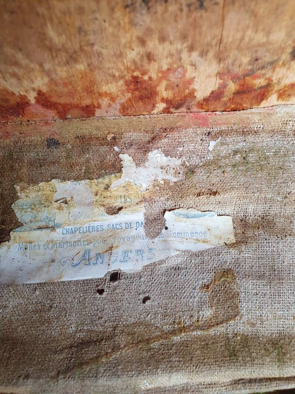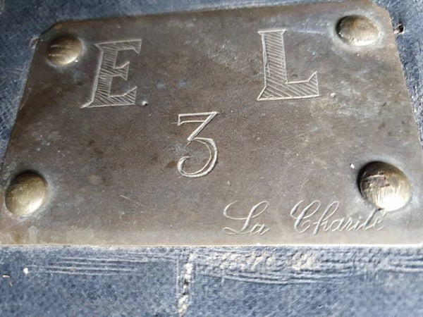 Antieke kist, afkomstig uit een circus met messing hoeken, sloten en een naamplaat E. L. 3 uit 1960. Maten 71 x 37 x 57 cm hoog.