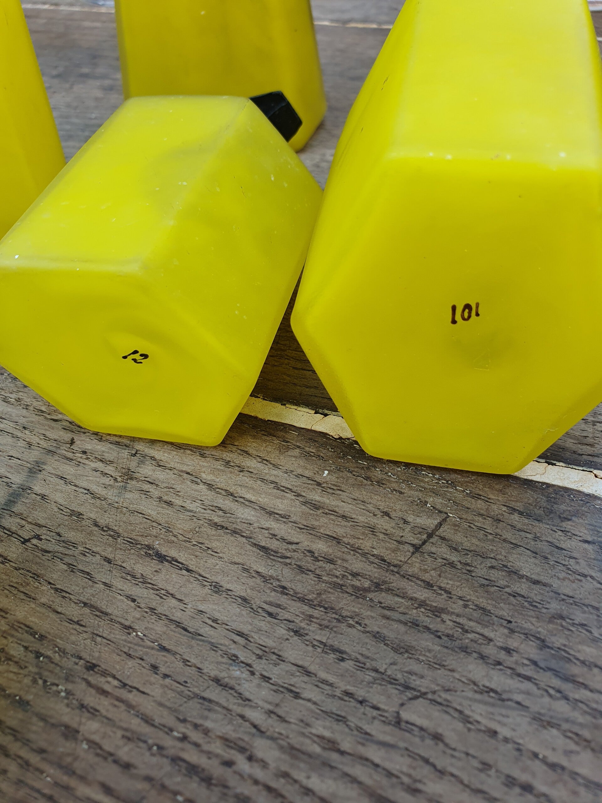 Antiek Art Deco kaptafel / toilettafel set van hoekig geel matglas met zwart glazen stolpen. Zeer bijzonder!De set is 6 delig.Het slangetje van de verstuiver moet vervangen worden.