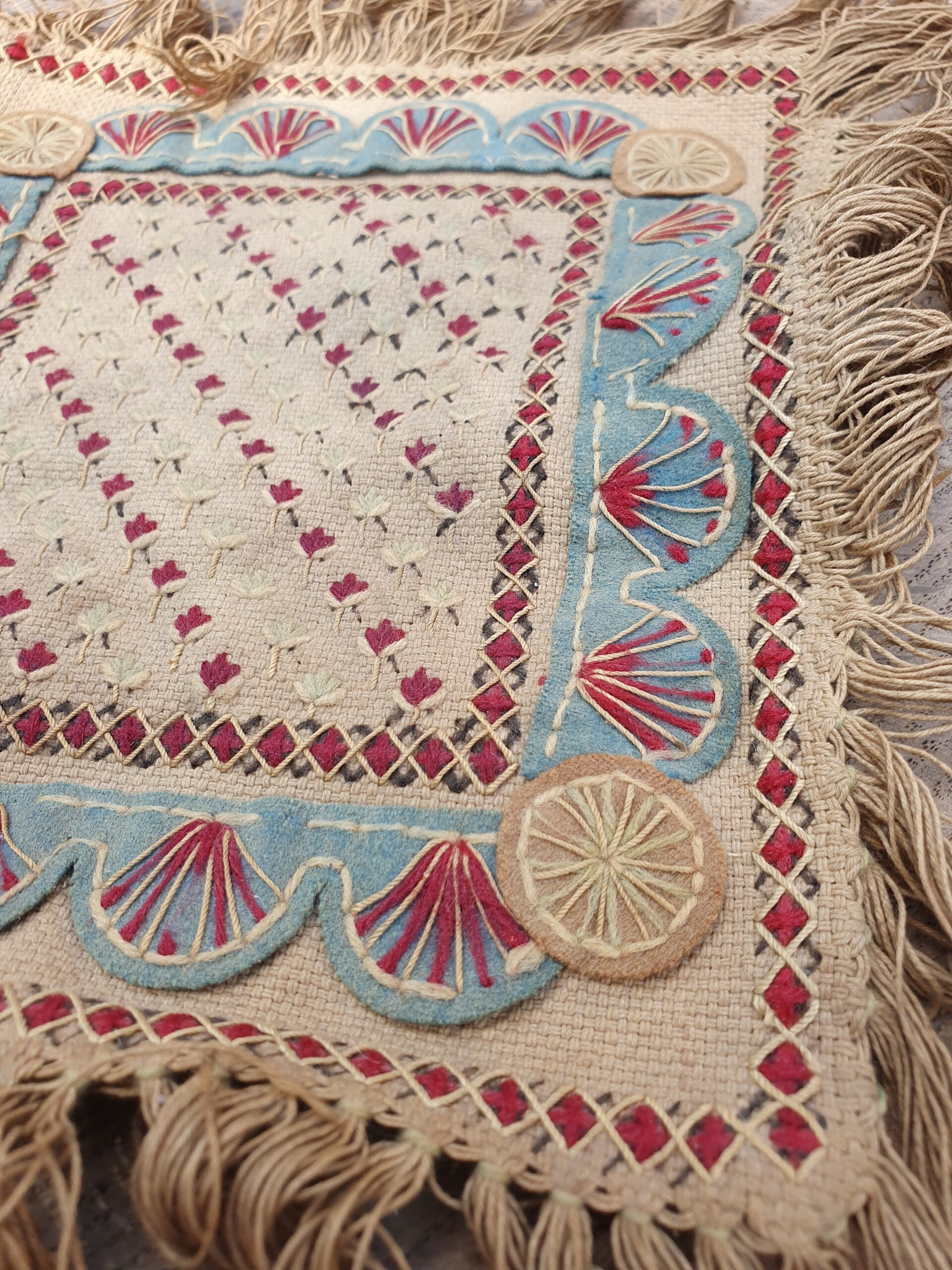 Zeer oud stukje handwerk! 25 x 23 cm.