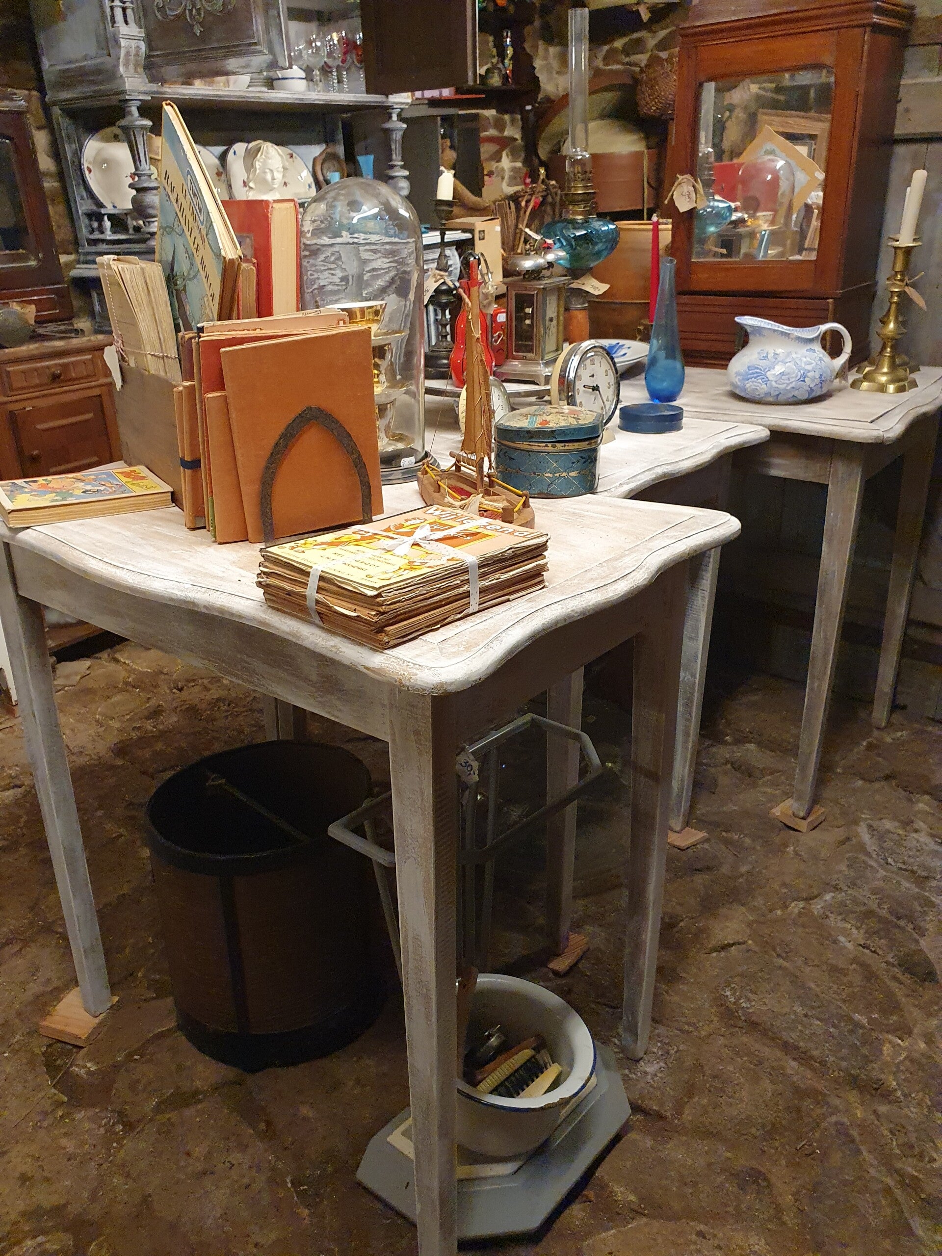 Brocante tafe in antiek wit van 80 x 50 x 78 cm hoog.