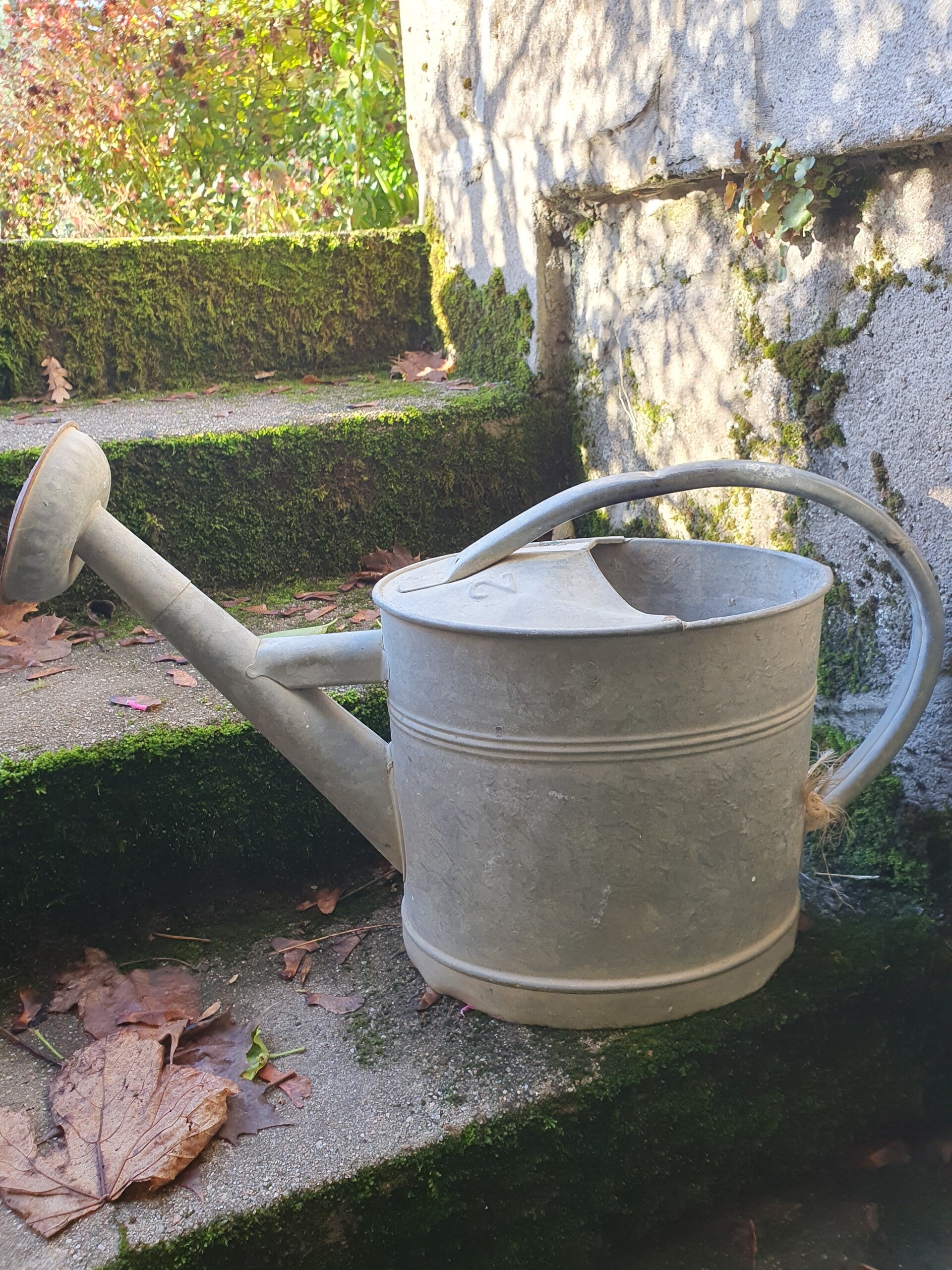 Grote vintage gieter van zink, nummer 2 met broes en niet lek.