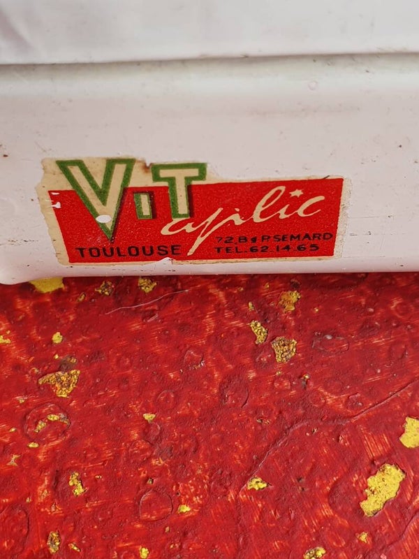 Leuk vintage verbandkistje van metaal met binnenin een vakverdeling, verkocht door VIT Toulouse. De maten zijn 20 x 15 x 7,5 cm.