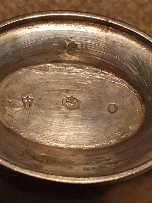 Verzilverde suikerpot, gemerkt 8 x 8 cm
