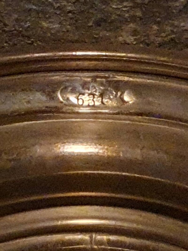 Mooi bewerkte, verzilverde beker- of glashouder, genummerd 631, gemerkt en met initialen F H.