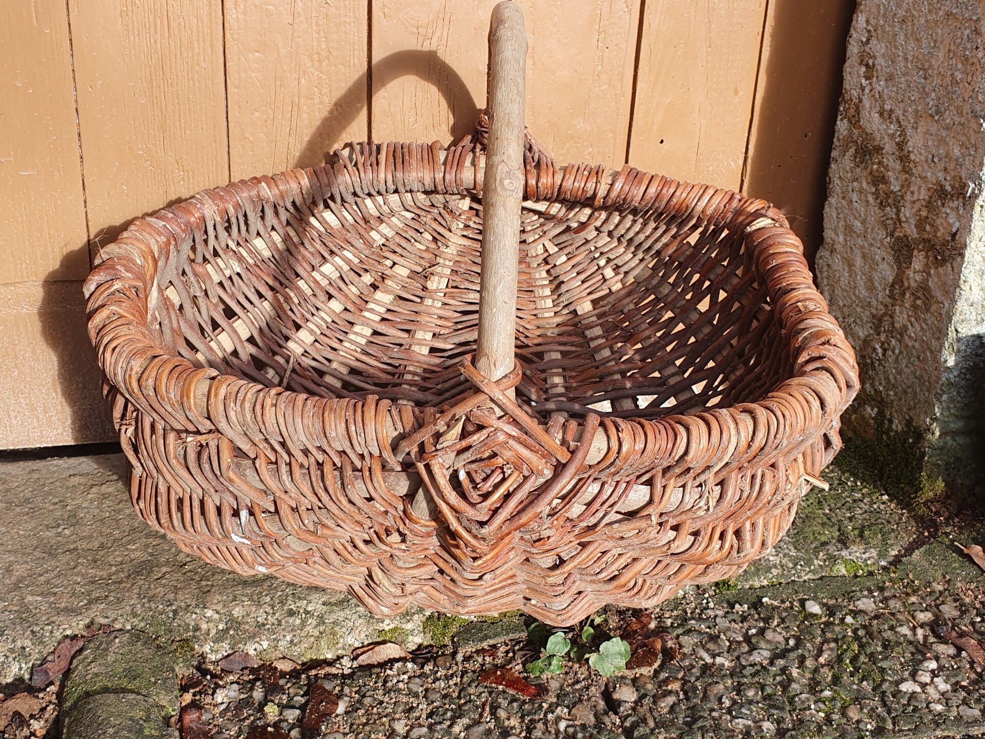 Antieke handgevlochten mand van wilgentenen van meer dan 50 jaar oud in nieuwestaat! De mand is 42 x 36 x 16 cm.