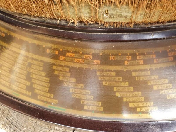 Ancienne radio Philips Paris, France 1937, type Junior V6A. La radio à tube est entièrement en bakélite. Le mur du fond est d'origine et contient toutes les étiquettes et les numéros de série. Opération inconnue.