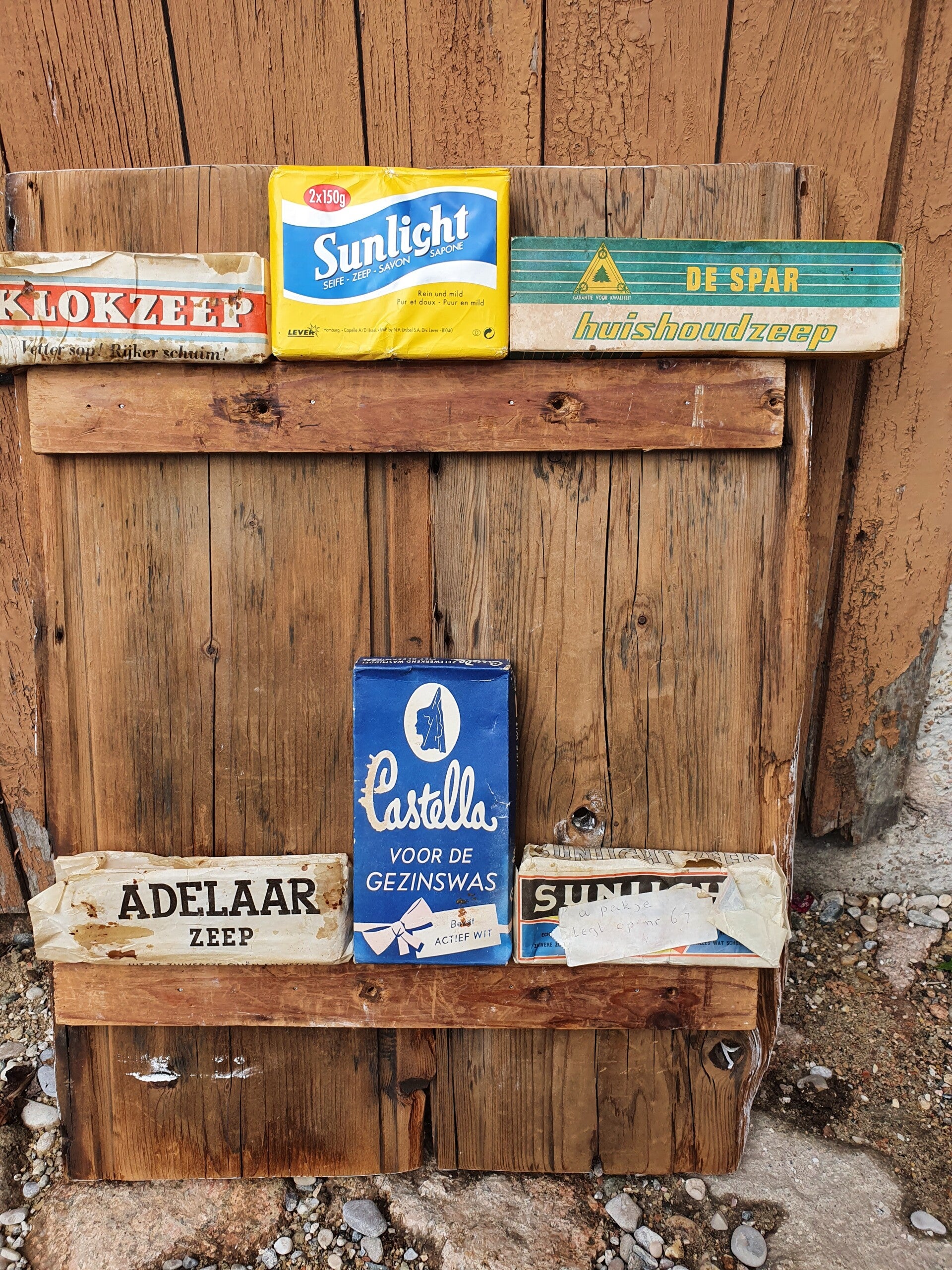 Origele verpakking van "Castella" zeeppoeder. Kijk in de webshop voor meer oude zeepverpakkingen.